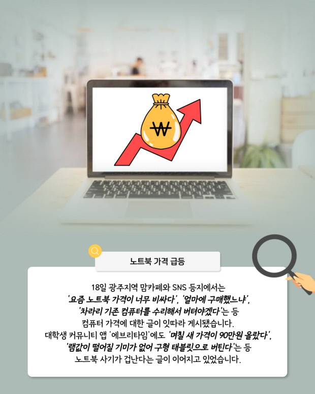AI 데이터센터 확대로 메모리 수요가 급증한 영향으로, 데스크톱과 노트북 가격이 1.5~2배 가까이 상승해 대학·대학원 입학생과 학부모들의 구매 부담이 커진 상황이다.