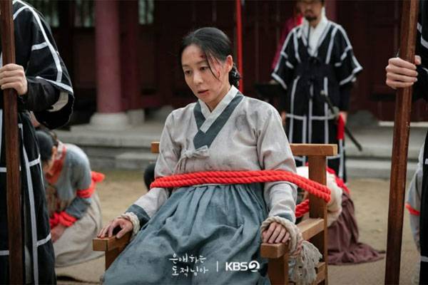 그래서 이 청춘로맨스는 핍박받던 민초들이 횃불을 들고 폭군과 간신의 폭정과 싸우는 이야기로 연결된다. 길동과 은닉했다는 이유로 대역죄인이 되어 잡혀가는 석삼(홍우진)이 은조에게 내 걱정은 말라며 하는 말은 우리를 뭉클하게 만든다. "행여나 우리가 잘못되더라도 너는 아무 상관 없는 거다. 그동안 고마웠어." 그건 은조가 길동인 걸 알면서도 자신이 죽겠다는 거다. 이것은 붙잡혀와 갖은 고초를 겪으면서도 비명소리 하나 내지 않는 동주댁(이진희)도 마찬가지다. 죽음이 두렵긴 하지만 그걸 이기는 건 길동에 대한 고마움이다.