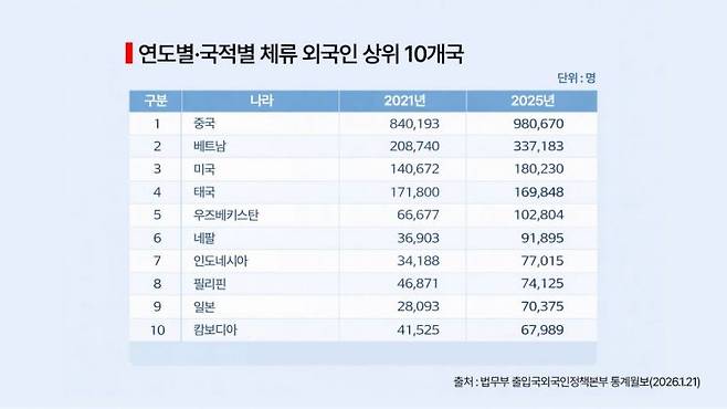 우리나라에 사는 외국인은 중국인 베트남인 미국인 순
