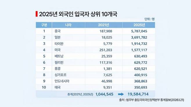 지난해 한국에 입국한 외국인은 1958만 명. 어느 나라 사람들이 한국을 찾았을까. 중국 일본 타이완이 1, 2, 3위를 차지했다. 중국인 578만명, 일본인 369만 명, 타이완 191만 명이다. 미국인도 157만 명 정도 입국했다. 필리핀 홍콩(나라는 아니지만, 편의상 분류) 싱가포르 인도네시아, 태국에서 우리나라를 많이 찾았다. 정부는 2030년에는 3천만 명이 우리나라에 들어오는 것을 목표로 하고 있다.