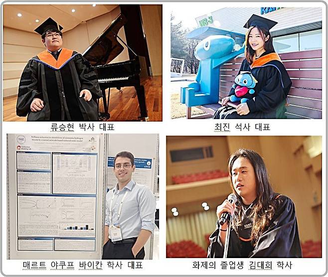 뇌과학 연구와 피아노 연주를 넘나들며 '피아노 치는 뇌과학자'로 불리는 박사 대표 바이오및뇌공학과 류승현 씨(33), 사회적 약자를 위한 기술 연구를 이어온 석사 대표 전산학부 최진 씨(27), 그리고 분단 국가 키프로스 출신의 튀르키예 국적 학생으로 외국인 최초 KAIST 총장 장학생에 선발된 학사 대표 항공우주공학과 메르트 야쿠프 바이칸 씨(23)가 그 주인공이다.