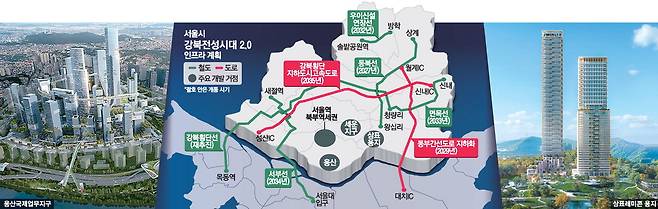 시는 국고보조금과 시비 등으로 마련한 16조원의 대부분을 강북지역 교통망 구축에 쏟아붓는다. 시는 총 8개 사업을 중점적으로 추진한다. 내부순환로~북부간선도로 지하 20.5㎞ 구간에 왕복 6차로 '강북횡단 지하도시고속도로'를 건설한다. 또 동부간선도로 총 15.4㎞ 구간(월계IC~대치IC)도 왕복4차로로 지하화한다. 우이신설연장선과 동북선, 면목선과 서부선 등 4개 강북권 도시철도 건설 사업이 공사 중이다. 시는 강북횡단선 건설도 다시 추진한다.