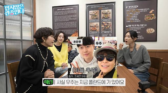 그런가 하면 조혜련은 "최근 이현이 유튜브에 나갔을 때 아이들과의 관계를 묻길래, 농담으로 '지금은 연락이 안 된다'라고 말했다. 이후 '조혜련, 아이들과 연락 두절'이라는 제목의 기사가 나왔다"라며 최근 자극적인 기사가 마음이 쓰였다고 전하기도. 이어 "아들 우주는 폴란드에 가 있다. 6개월간 성경 연구하고 있는데 너무 멋지다"라며 우주 군을 자랑스러워했다.