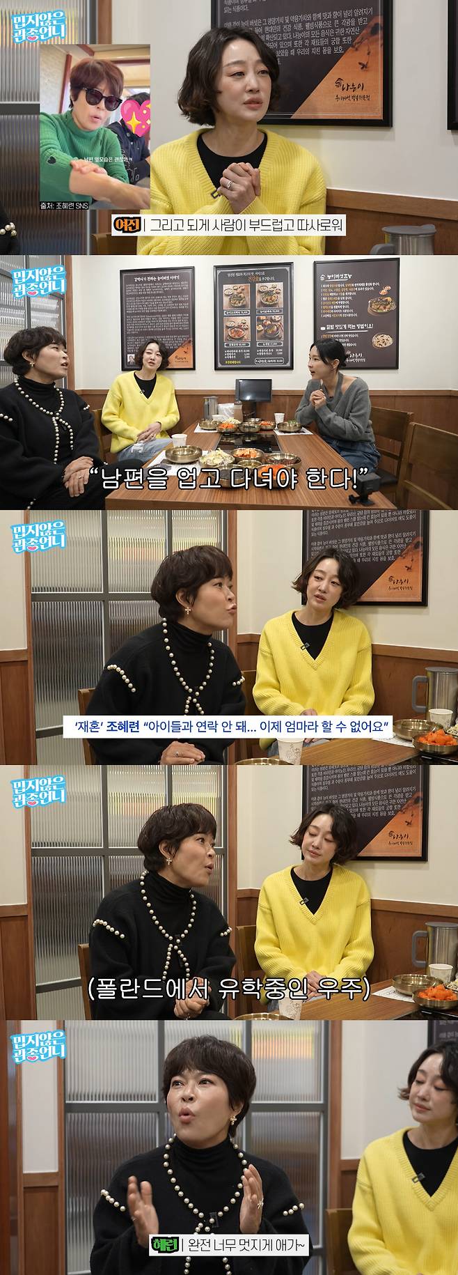 그런가 하면 조혜련은 "최근 이현이 유튜브에 나갔을 때 아이들과의 관계를 묻길래, 농담으로 '지금은 연락이 안 된다'라고 말했다. 이후 '조혜련, 아이들과 연락 두절'이라는 제목의 기사가 나왔다"라며 최근 자극적인 기사가 마음이 쓰였다고 전하기도.
