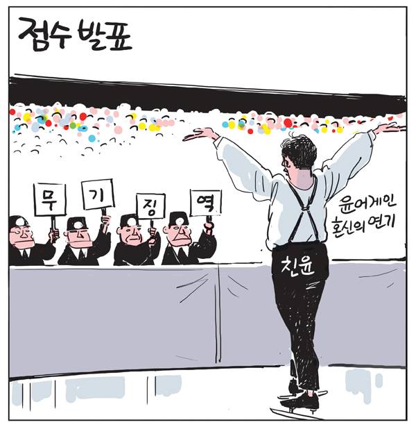 [경인만평] 점수 발표 이공명 2026. 2. 19. 19:26 음성으로 듣기 음성재생 설정 이동 통신망에서 음성 재생 시 데이터 요금이 발생할 수 있습니다. 글자 수 10,000자 초과 시 일부만 음성으로 제공합니다. 남성 여성 느림 보통 빠름 음성 재생하기 닫기 음성 재생 중지 번역 설정 번역beta Translated by kaka i 한국어 - English 영어 日本語 일본어 简体中文 중국어 Nederlands 네델란드어 Deutsch 독일어 Русский 러시아어 Malaysia 말레이시아어 বাঙ্গোল ভাষা 벵골어 tiếng Việt 베트남어 Español 스페인어 اللغة العربية 아랍어 Italiano 이탈리아어 bahasa Indonesia 인도네시아어 ภาษาไทย 태국어 Türkçe 튀르키에어 Português 포르투갈어 Français 프랑스어 हिन्दी 힌디어 닫기 번역중 Now in translation 글씨크기 조절하기 글자크기 설정 파란원을 좌우로 움직이시면 글자크기가 변경 됩니다. 가 매우 작은 폰트 작은 폰트 보통 폰트 큰 폰트 매우 큰 폰트 가 이 글자크기로 변경됩니다. (예시) 가장 빠른 뉴스가 있고 다양한 정보, 쌍방향 소통이 숨쉬는 다음뉴스를 만나보세요. 다음뉴스는 국내외 주요이슈와 실시간 속보, 문화생활 및 다양한 분야의 뉴스를 입체적으로 전달하고 있습니다. 닫기 인쇄하기 /이공명 Copyright © 경인일보 All rights reserved. 무단전재 및 재배포 금지.