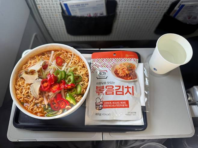 기내에서 라면 냄새의 유혹은 강력하다. 한 명이 주문하니 여기저기서 주문이 들어온다. 그러나 아쉽게도 라면과 냉면은 한정 수량으로 판매한다. 승무원의 본업인 안전 업무에 충실하기 위함이다. 때문에 비행기 탑승이 시작되기 전부터 ‘라면 주문은 언제부터 할 수 있냐’는 눈치싸움이 벌어진다. 기자가 비행기에 탑승한 날도 이륙 전 일찌감치 주문이 마감됐다.