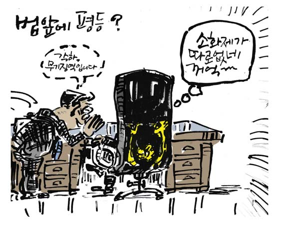 [최경락 만평] 법 앞에 평등? 최경락 2026. 2. 19. 20:45 음성으로 듣기 음성재생 설정 이동 통신망에서 음성 재생 시 데이터 요금이 발생할 수 있습니다. 글자 수 10,000자 초과 시 일부만 음성으로 제공합니다. 남성 여성 느림 보통 빠름 음성 재생하기 닫기 음성 재생 중지 번역 설정 번역beta Translated by kaka i 한국어 - English 영어 日本語 일본어 简体中文 중국어 Nederlands 네델란드어 Deutsch 독일어 Русский 러시아어 Malaysia 말레이시아어 বাঙ্গোল ভাষা 벵골어 tiếng Việt 베트남어 Español 스페인어 اللغة العربية 아랍어 Italiano 이탈리아어 bahasa Indonesia 인도네시아어 ภาษาไทย 태국어 Türkçe 튀르키에어 Português 포르투갈어 Français 프랑스어 हिन्दी 힌디어 닫기 번역중 Now in translation 글씨크기 조절하기 글자크기 설정 파란원을 좌우로 움직이시면 글자크기가 변경 됩니다. 가 매우 작은 폰트 작은 폰트 보통 폰트 큰 폰트 매우 큰 폰트 가 이 글자크기로 변경됩니다. (예시) 가장 빠른 뉴스가 있고 다양한 정보, 쌍방향 소통이 숨쉬는 다음뉴스를 만나보세요. 다음뉴스는 국내외 주요이슈와 실시간 속보, 문화생활 및 다양한 분야의 뉴스를 입체적으로 전달하고 있습니다. 닫기 인쇄하기 Copyright © 저작권자 © 중부일보 - 무단전재 및 재배포 금지