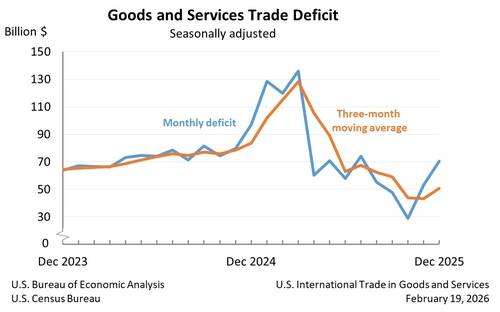 19일(현지시간) 미 상무부에 따르면 작년 12월 상품 및 서비스 무역수지 적자는 703억달러로 집계됐다.
