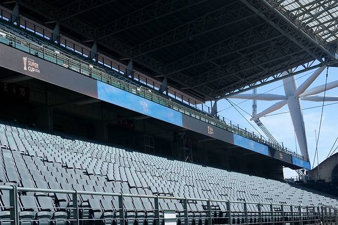 리본 전광판 구축과 함께 그라운드 LED 보드 역시 전면 교체, 확대됐다. 새롭게 리뉴얼된 그라운드 LED 보드는 기존 대비 높이를 상향 조정하고 폭을 대폭 확대해 축구장 3면을 모두 커버하는 구조로 경기장 전반의 연출과 콘텐츠 전달력을 한층 강화했다.