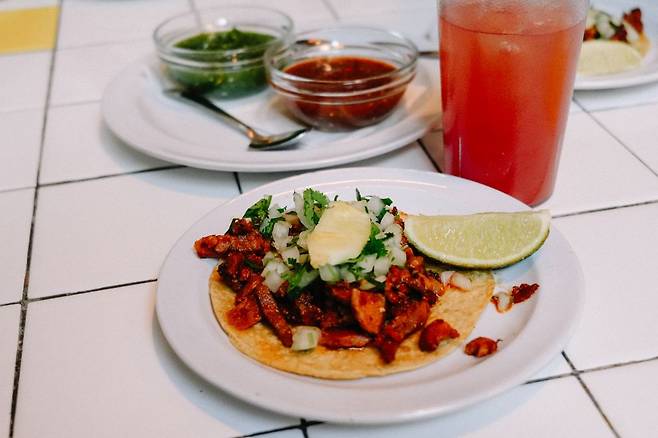 진짜 타코를 맛보고 싶다면 타콤비(Tacombi)를 추천한다. 멕시코 해안가의 작은 칸티나(Cantina, 멕시코 전통 술집)에 온 듯한 산뜻한 인테리어가 우선 눈길을 끈다. 밝은 색감의 인테리어, 멕시코 시장을 연상시키는 타일, 오픈 키친에서 풍기는 토르티야 굽는 냄새 덕분에 먹기도 전에 기분이 좋아진다.