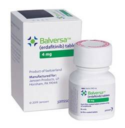 발베사정은 이전에 최소 한 가지 이상의 PD-1 또는 PD-L1 억제제를 포함한 전신요법 치료 중 또는 치료 후에 질병이 진행된 FGFR3 유전자 변이가 있는 수술적으로 절제 불가능한 국소 진행성 또는 전이성 요로상피암 성인 환자 치료에 쓰이는 신약이다. 현재 미국, 영국, 독일, 프랑스, 스위스, 일본에 등재돼 있다.