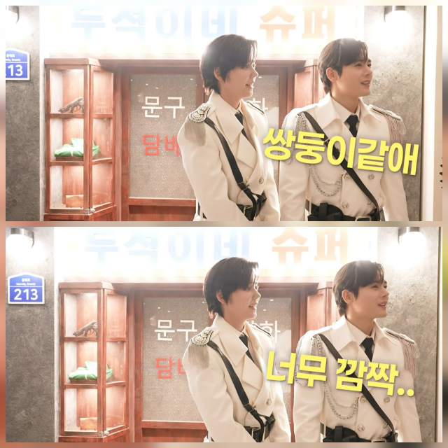 이후 한가인은 김동준이 출연 중인 뮤지컬 공연장을 찾았다. 대기실에서 만난 김동준은 한가인을 보자마자 “누나라고 불러야 해요? 형이라고 불러야 해요?”라며 당황한 반응을 보여 웃음을 안겼다. 앞서 김동준 역시 변신 사진을 받고 “내가 분장한 줄 알았다가 자세히 보니 누나였다”고 밝혔던 상황.