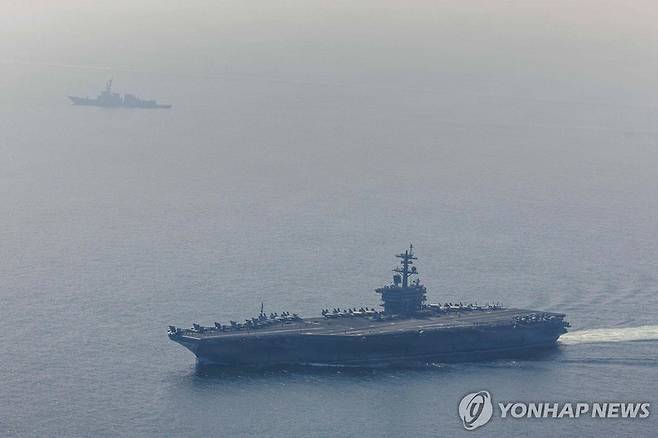 [이란 해역으로 이동 중인 미 항공모함. (사진=연합뉴스)]