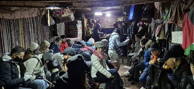 | ▲ 시나이산 등정의 중간 휴게소에 모인 순례객들 가파른 시나이산을 오르는 길에 중간중간 쉴수 있는 휴게소가 있다. |