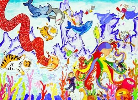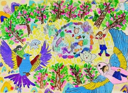 | ▲ '몽유도원에서 친구와 함께 새를 타고 즐겁게 놀아요' 2025년 초등저 부문대상 매원초등학교 유시유 작품 |