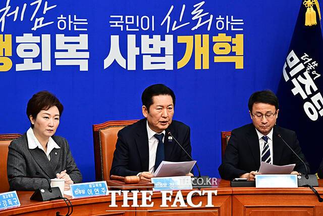 이어 "사법부가 제2의 전두환, 제2의 윤석열이라는 반역의 불씨를 계속 남기는 일이 없게 하겠다"며 "대법관 증원, 법왜곡죄 신설, 재판소원제 도입 등 사법개혁을 확실하게 완수하겠다"고 강조했다.
