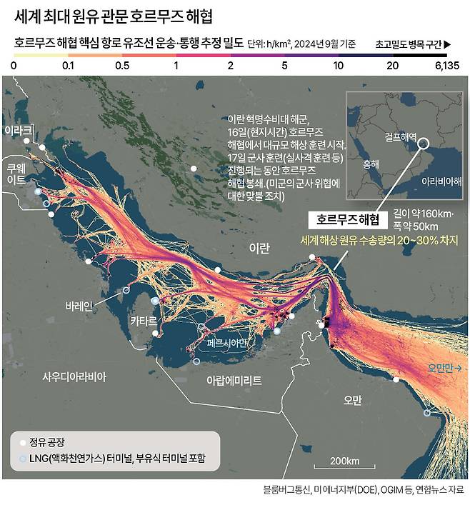 호르무즈 해협은 전 세계 석유 및 천연가스(LNG) 물동량의 약 20~25%가 통과하는 요충지다. 이곳에 기뢰를 매설하면 이란에도 타격이 크지만, 미 해군력을 효율적으로 견제할 수 있다.