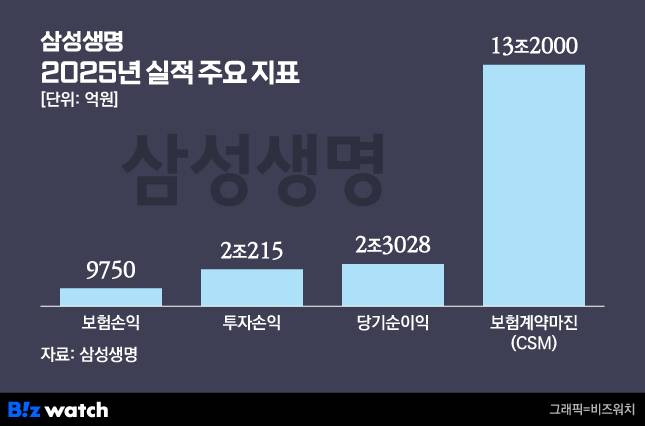 보험서비스손익은 보험계약마진(CSM) 손익 확대 및 예실차 축소 영향으로 9750억원을 기록했다. 이는 전년 대비 79.8% 증가한 수치다. 예실차는 2024년 -2080억원에서 지난해 -1610억원으로 470억원 줄었다. 투자손익은 전년 대비 11% 감소한 2조220억원이다.