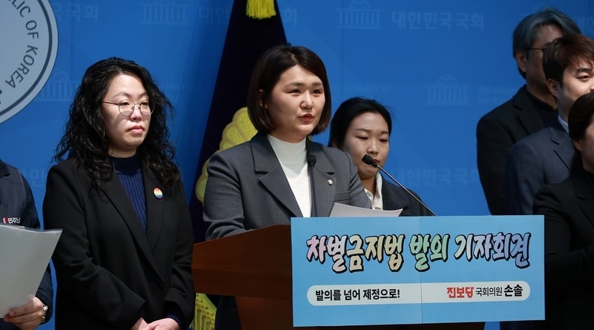 ▲ 2026년 1월 12일, 손솔 진보당 의원이 22대 국회에서의 첫 차별금지법을 대표발의하며 기자회견을 열었다. (출처: 손솔 의원 페이스북) |