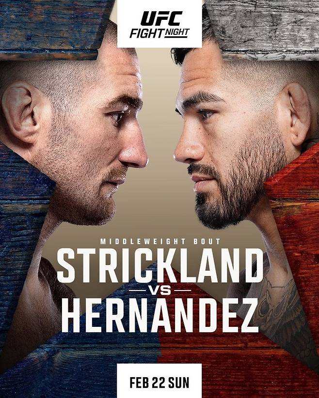 UFC는 오는 22일 미국 텍사스주 휴스턴 도요타 센터에서 'UFC 파이트 나이트: 스트릭랜드 vs 에르난데스'를 개최한다. 메인 이벤트에서는 UFC 미들급 랭킹 3위 션 스트릭랜드(29승 7패)와 4위 앤서니 에르난데스(15승 2패 1무효)가 맞붙는다.
