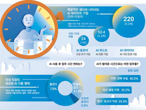 ![국내 직장인들 사이에서 생성형 AI가 빠르게 업무에 내재화되며 시간 절감과 생산성 향상 효과가 확산되는 가운데, 기업과 개인 모두 ‘AI 네이티브’ 역량 강화에 나서고 있다. 사진은 판교테크노밸리 [사진 = 연합뉴스]](https://img3.daumcdn.net/thumb/R658x0.q70/?fname=https://t1.daumcdn.net/news/202602/20/mk/20260220203001891ktgu.jpg)