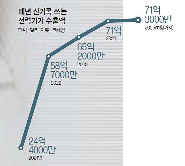 전력기기 수출액, 챗GPT 등장 이후 매년 경신
