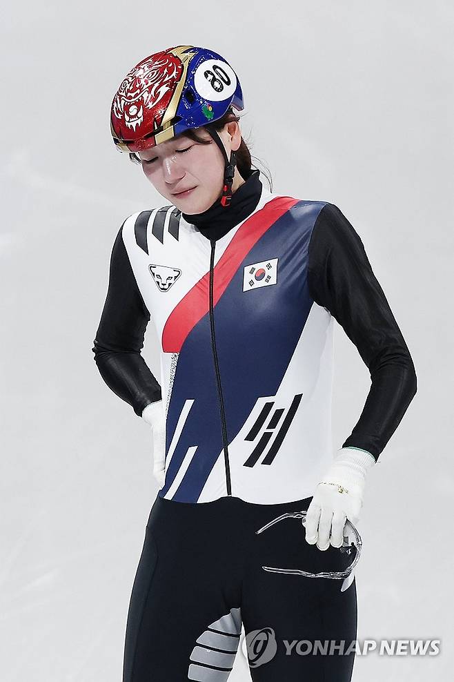 (밀라노=연합뉴스) 서대연 기자 = 20일(현지시간) 이탈리아 밀라노 아이스스케이팅 아레나에서 열린 2026 밀라노ㆍ코르티나담페초 동계올림픽 쇼트트랙 여자 1,500m 준결승에서 넘어진 노도희가 경기가 끝난 뒤 눈물을 흘리고 있다. 2026.2.21
