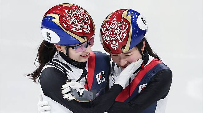 경기 후 최민정은 감격에 젖어 눈물을 흘리는 김길리를 안아주며 격려했습니다.