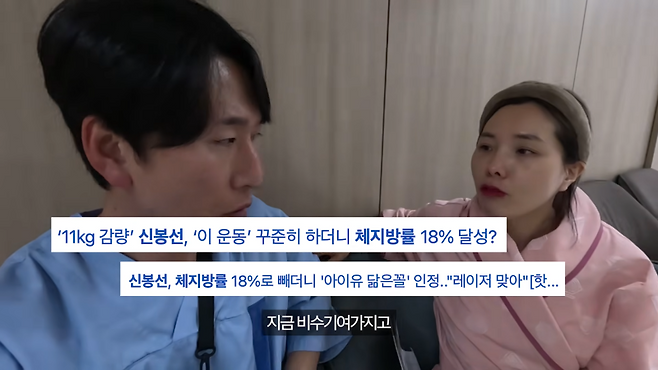 앞서 신봉선은 11kg 감량에 성공해 화제를 모았으며, 체지방률 18%를 달성했다고 밝혀 놀라움을 안긴 바 있다.