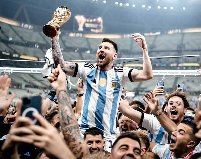 그가 언급한 장면은 2022년 카타르 월드컵에서 아르헨티나가 우승을 확정한 뒤 메시가 그토록 염원하던 월드컵 트로피를 들어 올리던 장면을 가리킨다.