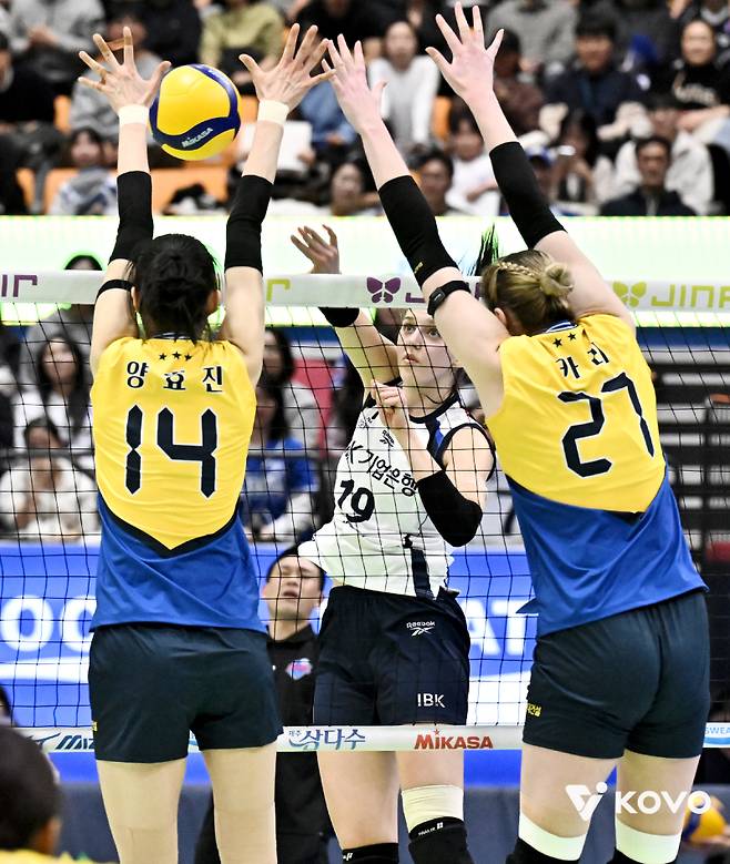 갈 길 바쁜 5위 IBK기업은행은 승점(44) 추가에 실패해 4위 GS칼텍스(승점 45)와 간격을 좁히지 못했다. 외국인 선수 빅토리아 댄착(등록명 빅토리아)이 22점, 최정민(20점) 육서영(17점)도 좋은 활약을 펼쳤지만 팀 패배를 막지 못했다.