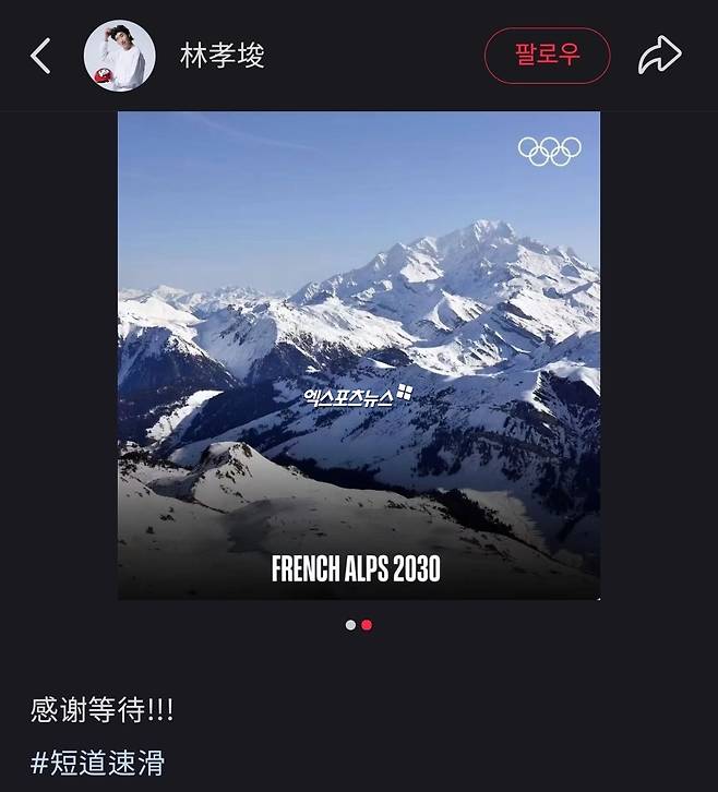 린샤오쥔은 특히 2030 프랑스 알프스 올림픽 관련 사진을 함께 게재해 한 번 더 올림픽에 나가고 싶은 의지를 드러냈다.