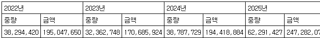 (단위: ㎏, 달러)