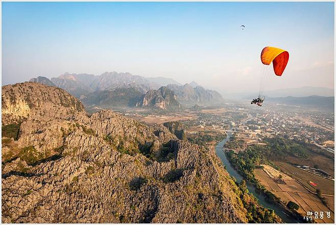 「 라오스 방비엥. 모터 페러글라이더를 타고 새가 되어 보고, 집라인을 타고 타잔이 되었다. 렌즈 16~35mm, iso 100, f5.6, 1/500초.