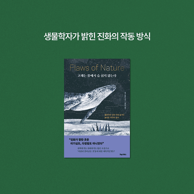 영국 생물학자 앤디 돕슨의 저서 『고래는 물에서 숨 쉬지 않는다』는 진화를 완벽을 향한 설계 과정으로 이해해온 대중적 통념을 정면으로 뒤집는 책이다.