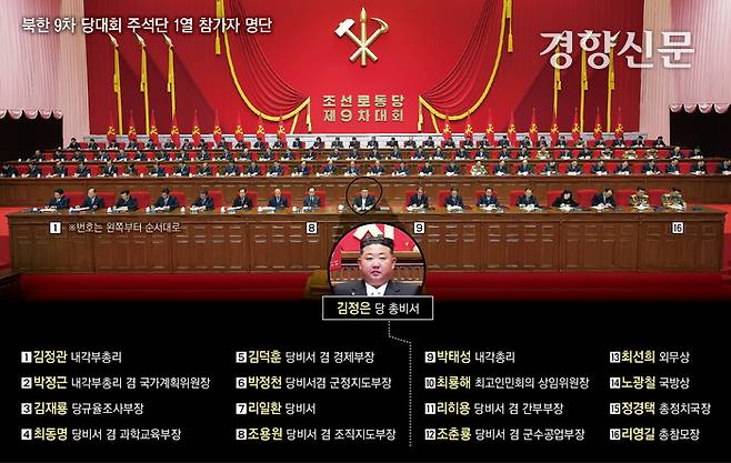 전국 당 대표자 수는 8차 대회와 동일한 5000명으로, 부문별로 보면 군인 대표가 408명에서 이번에 474명으로 16% 늘었다. 당대회는 앞으로 당 규약 개정, 주요 간부 선출, 부문별 협의회, 결정서 채택·결론, 폐회 순으로 진행될 것으로 보인다. 당 대회는 오는 24~25일쯤 끝날 것으로 예상된다.