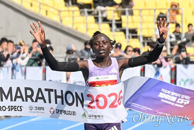 | ▲ 21일 열린 '2026 대구마라톤대회'에서 여자부 1위를 차지한 릴리안 카사이트 렌제룩(케냐) 선수. |