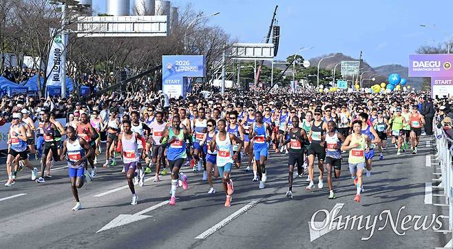 | ▲ 21일 오전 대구스타디움에서 출발해 대구시내를 돌아오는 제25회 '2026 대구마라톤대회'가 열렸다. |