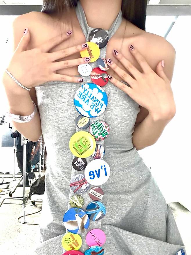 안유진은 헤드셋과 안경을 착용한 내추럴한 모습부터 고난도의 포니테일 스타일링까지 완벽하게 소화하며 비주얼의 정점을 찍었다. 특히 수많은 배지가 달린 독특한 드레스와 얼굴 모양이 프린팅된 의상을 입고 ‘IVE’ 헤어·메이크업 대기실 앞에서 포즈를 취하는 모습은 모델 못지않은 아우라를 자아냈다. 풍선껌을 불며 장난기 어린 표정을 짓는 사진에서는 안유진 특유의 사랑스러운 반전 매력도 엿볼 수 있었다.