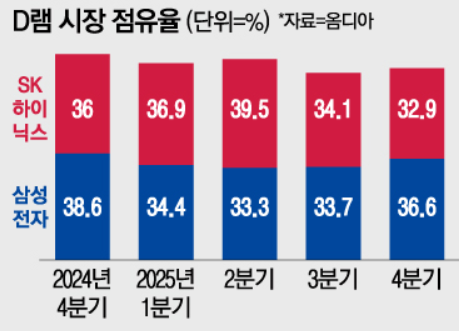 D램 시장에서 1위가 바뀐 것은 1992년 삼성전자가 D램 시장 세계 1위를 차지한 후 33년 만이었다. 이후 SK하이닉스는 옴디아 집계 기준으로 2025년 3분기까지 3분기 연속 D램 시장 1위를 차지했다.
