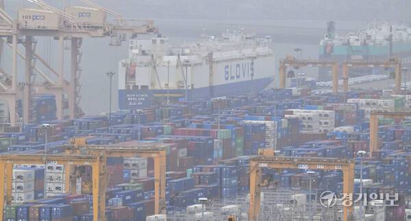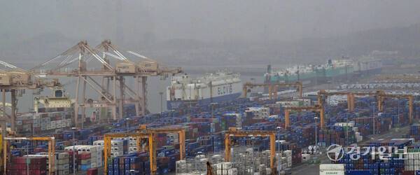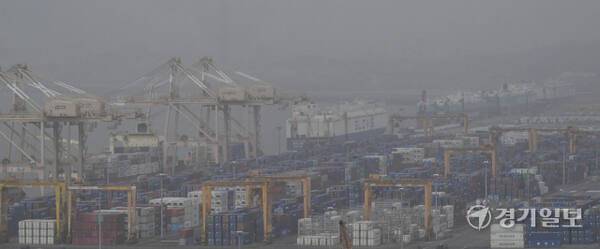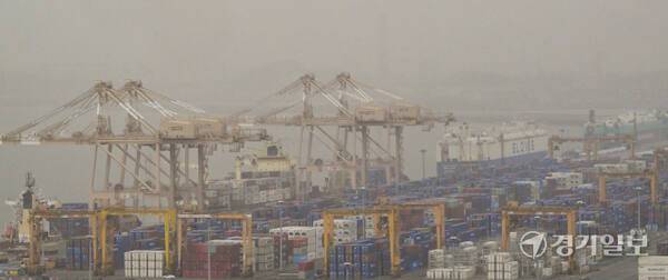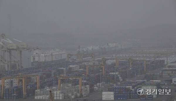 도널드 트럼프 미국 대통령이 미 연방대법원의 상호관세 위법 판결 이후 전 세계에 ‘글로벌 관세’를 15%로 인상한다고 밝히면서 우리나라 수출업체들의 대미 수출 전략이 안갯속에 빠지고 있다. 사진은 22일 오전 황사가 덮쳐 뿌옇게 보이고 있는 평택항 컨테이너터미널과 자동차전용부두 모습.