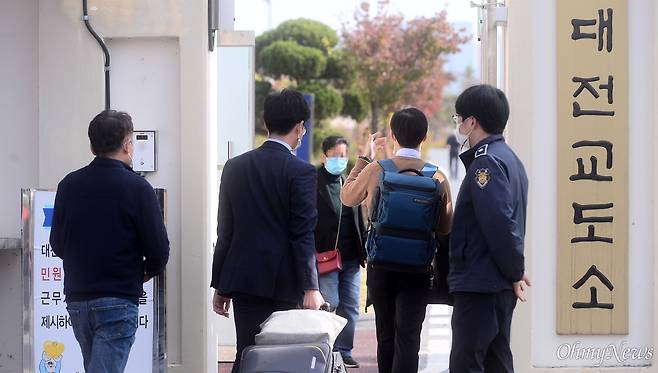 | ▲ 종교나 비폭력·평화주의 신념 등에 따른 병역거부자들을 위한 대체복무제가 처음 시행된 지난 2020년 10월 26일 오후 대전교도소 내 대체복무 교육센터에서 양심적 병역거부자 63명의 입교식이 열린 가운데 입교생들이 입교식장으로 들어가고 있다. |