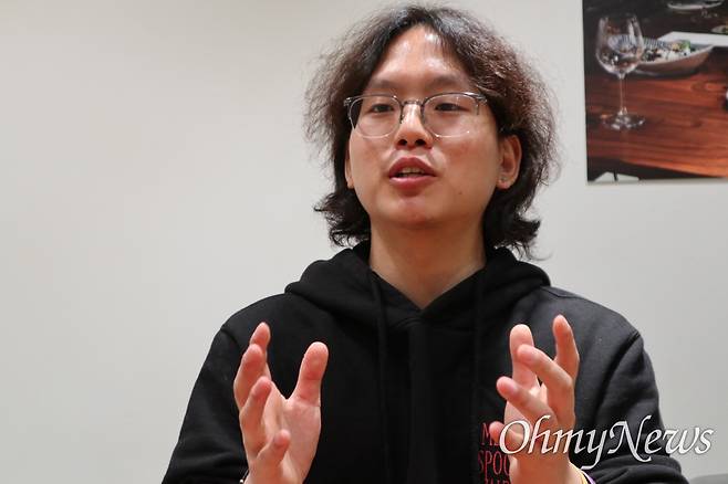 | ▲ 지난 2일 여의도 국회 앞 한 카페에서 김민형 한베평화재단 활동가가 <오마이뉴스>와 인터뷰하고 있다. |