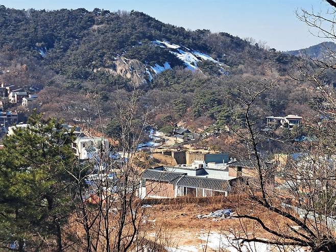 | ▲ 부암동 백악 마루 부근에서 바라 본 부암동. 인왕산 자락이 둘러 분지를 이룬 모습이, 무척 아늑해 보인다. |