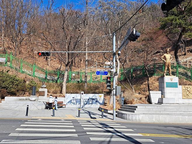 | ▲ 1.21 순직 경찰 동상 1.21 당시 침투한 북한군과 교전을 벌이다 순직한 두 분 경찰관의 동상. 윤동주 문학관 맞은 편이다. |