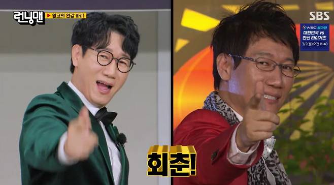 이에 지석진은 재치 있게 "나도 이때까지 할 줄 몰랐다. 근데 내가 진짜 대단한 건 그때 얼굴 그대로라는 거다. 영상과 비교해봐라. 진짜 그대로다"라고 말해 웃음을 자아냈다.