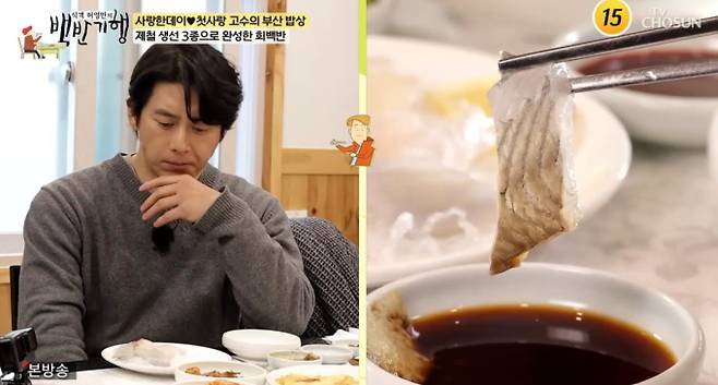 22일 방송된 TV조선 '식객 허영만의 백반기행'에서는 배우 고수가 출연해 허영만과 함께 부산의 돼지국밥과 회백반을 맛보는 모습이 그려졌다.
