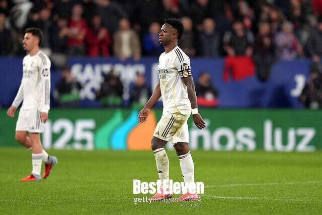 비니시우스가 속한 레알 마드리드는 22일 새벽(한국 시간) 엘 사다르에서 열린 2025-2026 스페인 라 리가 25라운드 오사수나 원정 경기에서 1-2로 패했다.