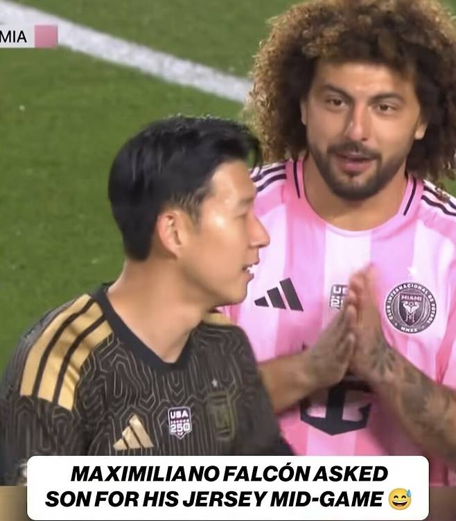 반면 손흥민은 인터 마이애미의 수비수 막시밀리아노 팔콘과 교환한 것으로 예상된다. 팔콘은 경기 도중 손흥민에게 유니폼 교환을 요청하는 장면이 SNS를 통해 공개됐다. 경기 중이었던 만큼 손흥민은 크게 반응하지 않았으나, 종료 후 교환했을 가능성이 높다.
