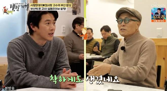 22일 TV조선 '식객 허영만의 백반기행'에선 고수가 게스트로 출연해 부산 밥상을 함께 맛 봤다.